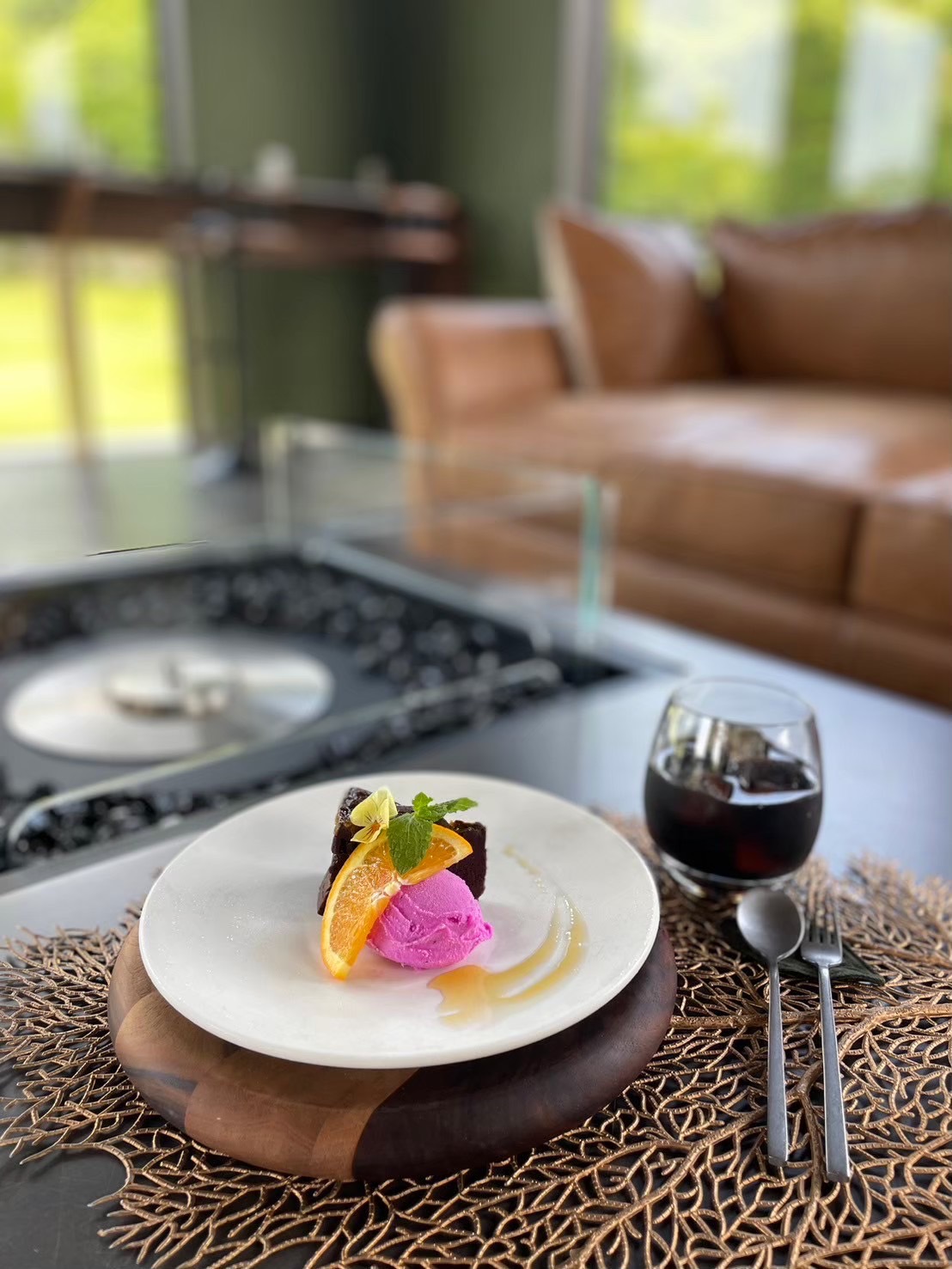 鹿児島で活躍されるARVOさまの日替わりチーズケーキにsweetsweetsさまの県産ジェラートを添えたYOSHIZORAでしか味わえないオリジナルデザートです。