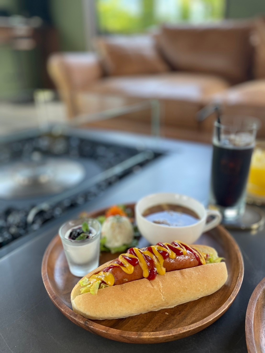 お肉屋さんの特製フランクフルトを使用したホットドックは歯ごたえ抜群の食感が魅力。